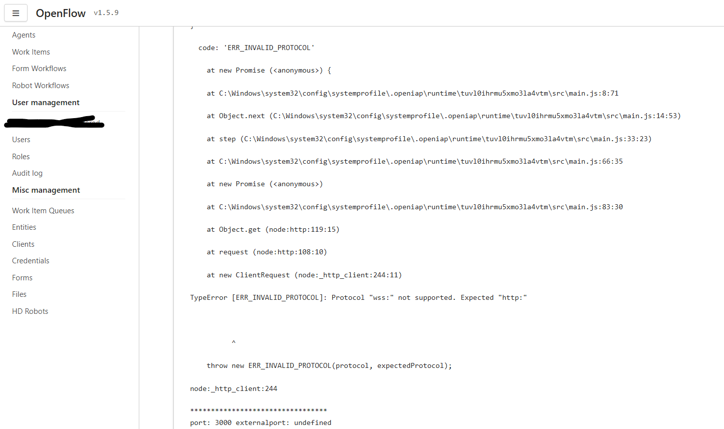 But the package runs in Visual Studio code but fails to run when initiated via OpenFlow.
