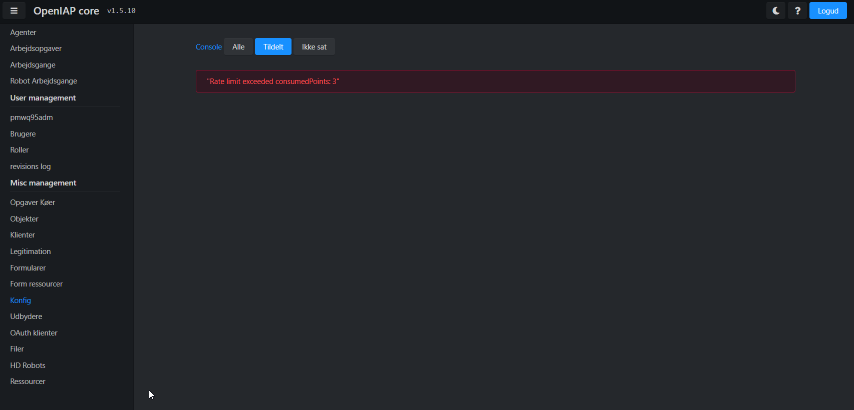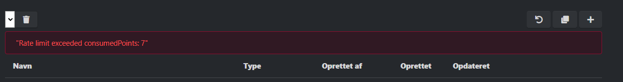 Error message: Rate limit exceeded consumedPoints: 7