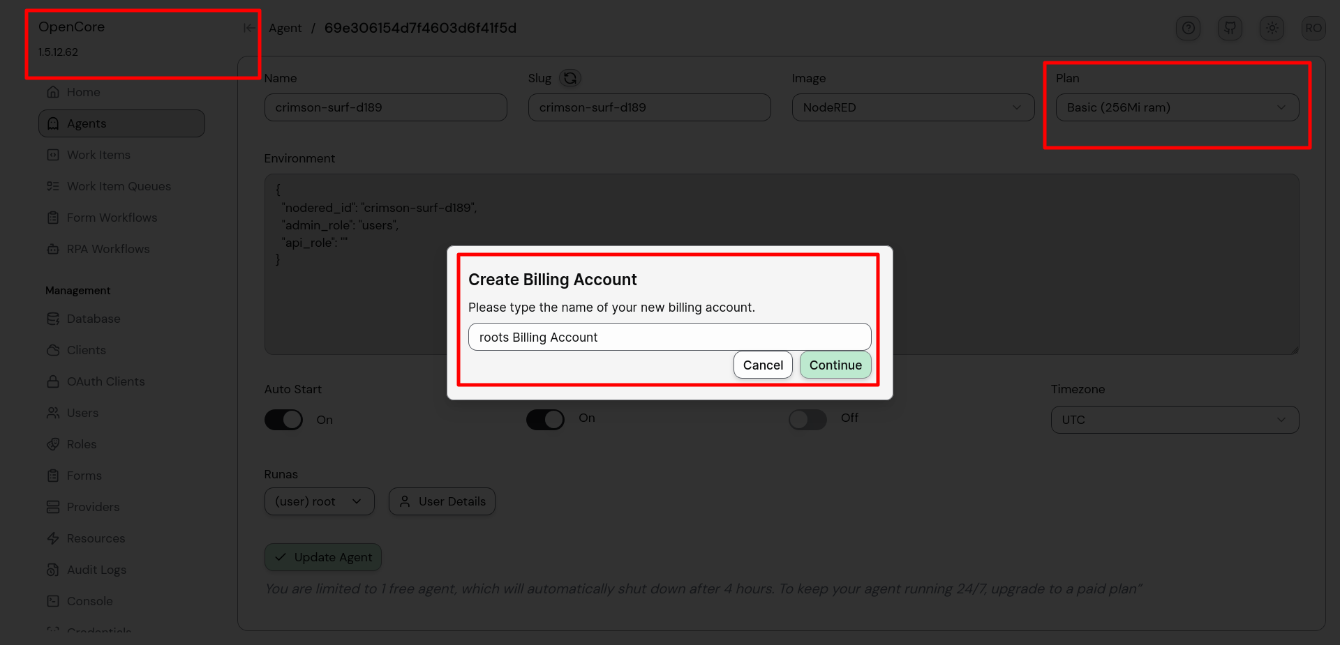 If an agent was created with a free plan and runtime_hours has been set under default metadata, the agent gets turned off during the next housekeeping job when the agent has been running for more than runtime_hours hours …